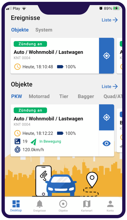 Das Floomli-GPS benachrichtigt Sie über alle Ereignisse Ihrer Objekte.